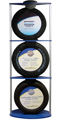 Our modular system utilizing our aluminum extrusions, in-house production, and fulfillment, makes it easy to design the perfect tire display- exclusively for your needs.